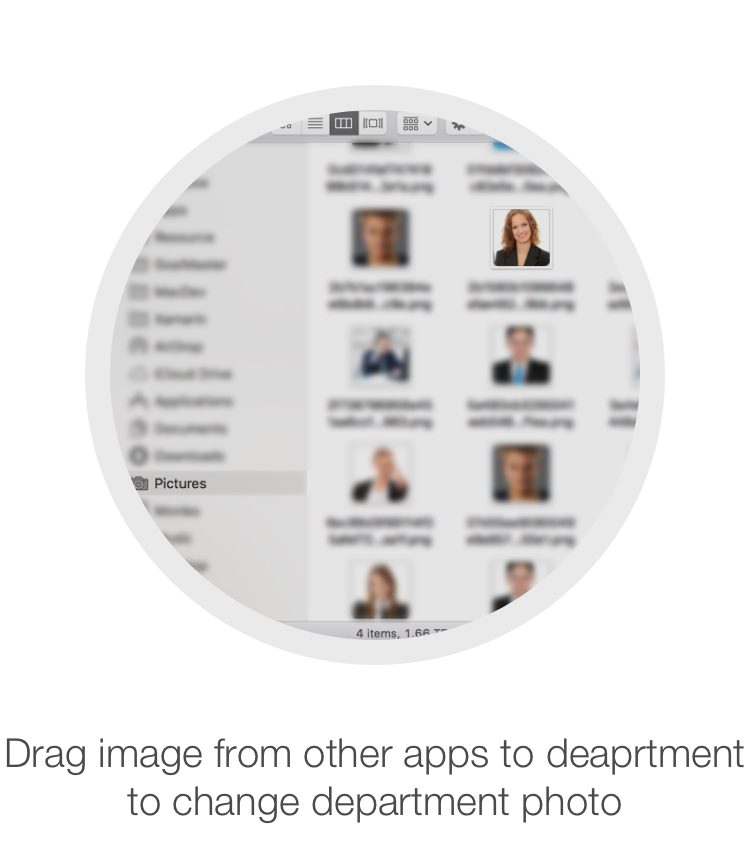 Sync org chart documents between iOS and Mac devices via iCloud Drive.