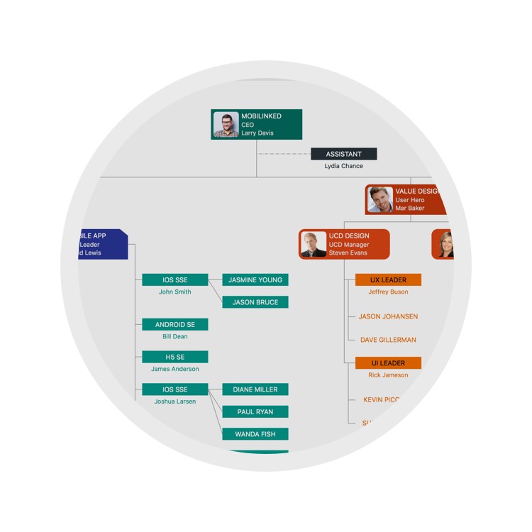 Quickly get what you want by specifying the color, shape, layout, content visibility, size, and line style of the departments. OrgChart will automatically draw it.