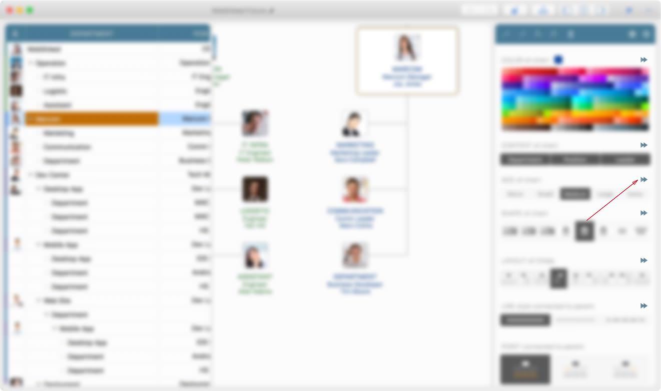 OrgChart supports to APPLY visual style to all the children – using this feature well will helps to adjust organization very easily and efficiently.
