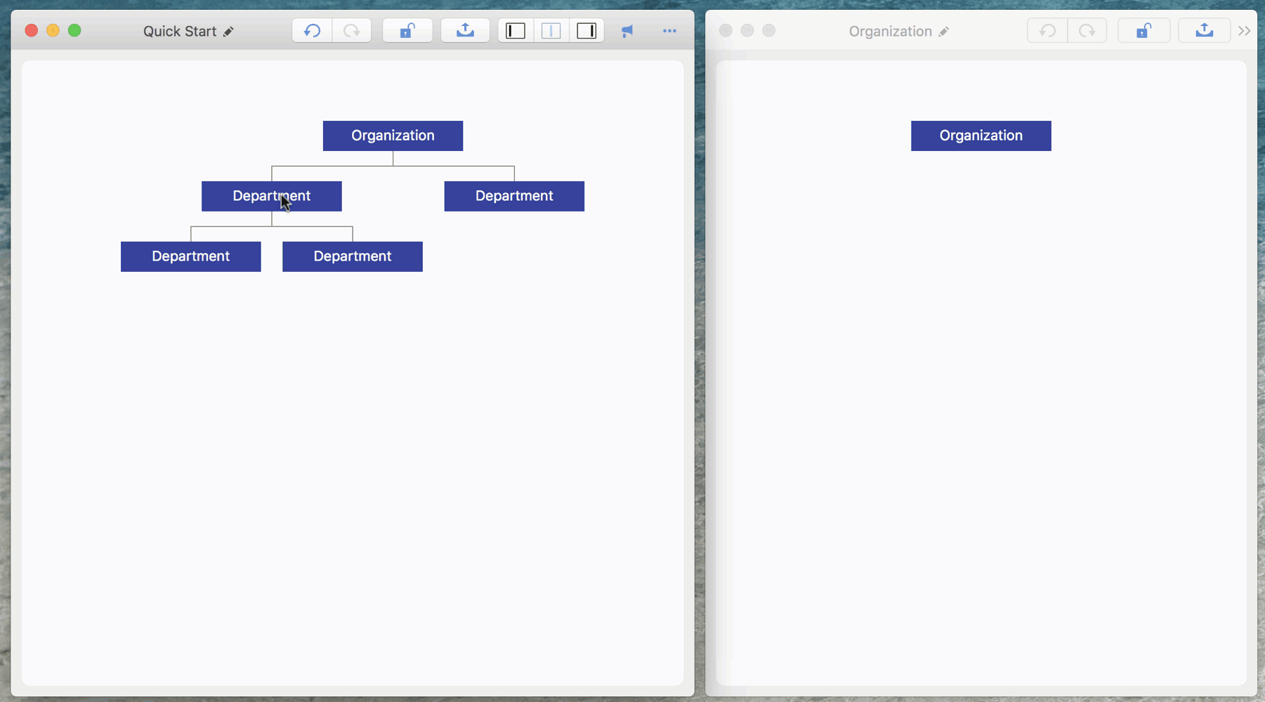 OrgChart supports to copy departments in same organization window or across organization windows.