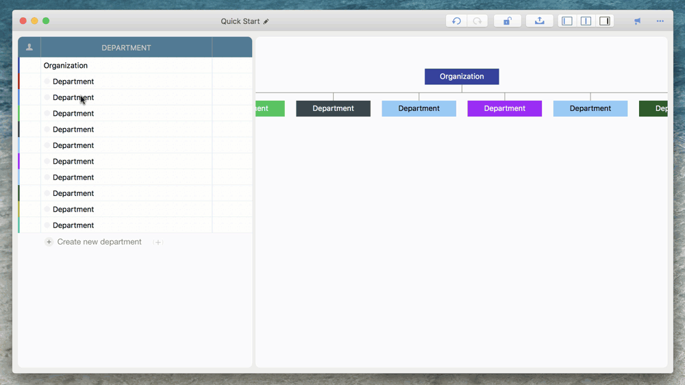 Changing the outline level and sequence of the departments to build parent-child relationships between departments
